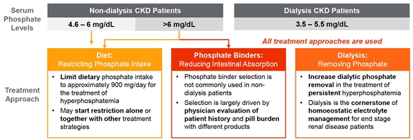 Chronic kidney disease (CKD) is the gradual loss of kidney function that can get worse over time leading to lasting damage. As a company, our initial focus is developing drugs and getting them approved in the US, and then look to partner with the other global biopharmaceutical companies in the rest of the world. According to estimates by Center for Disease Control (CDC) in 2019, 37 million (approximately 15%) adults in the United States have CKD and, of these, approximately 2 million patients with CKD stage 3-5, and around 400 thousand patients with end-stage renal disease (ESRD) have hyperphosphatemia. In the European Union (EU), around 20 million (approximately 8%) adults have CKD, more than 1 million CKD stage 3-5 patients, and approximately 180 thousand patients with ESRD have hyperphosphatemia. The number of patients with ESRD is increasing steadily and is projected to reach between 971,000 and 1,259,000 in 2030.