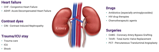 AKI is a sudden episode of kidney failure or kidney damage (within the first 90 days of injury). After 90 days, the patient is considered to have progressed into CKD. AKI affects over 2 million U.S. patients and costs the healthcare system over $9 billion per year. AKI kills more than 300,000 patients per year in the U.S. and is caused by multiple etiologies.
