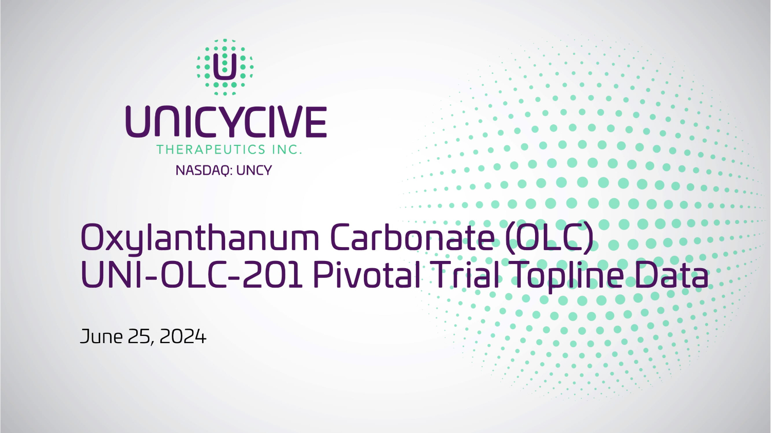 Oxylanthanum Carbonate (OLC) UNI - OLC - 201 Pivotal Trial Topline Data June 25, 2024 NASDAQ: UNCY