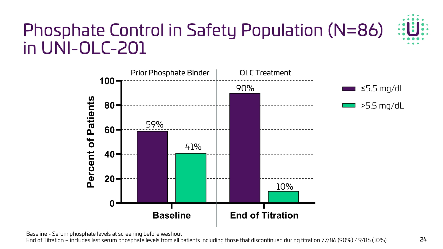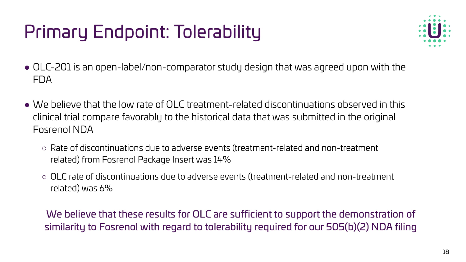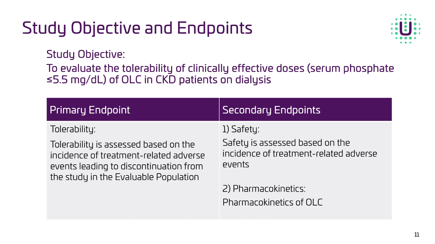 Study Overview UNI - OLC - 201 Topline data from the Oxylanthanum carbonate (OLC) pivotal trial is preliminary and subject to change based on further detailed analysis.